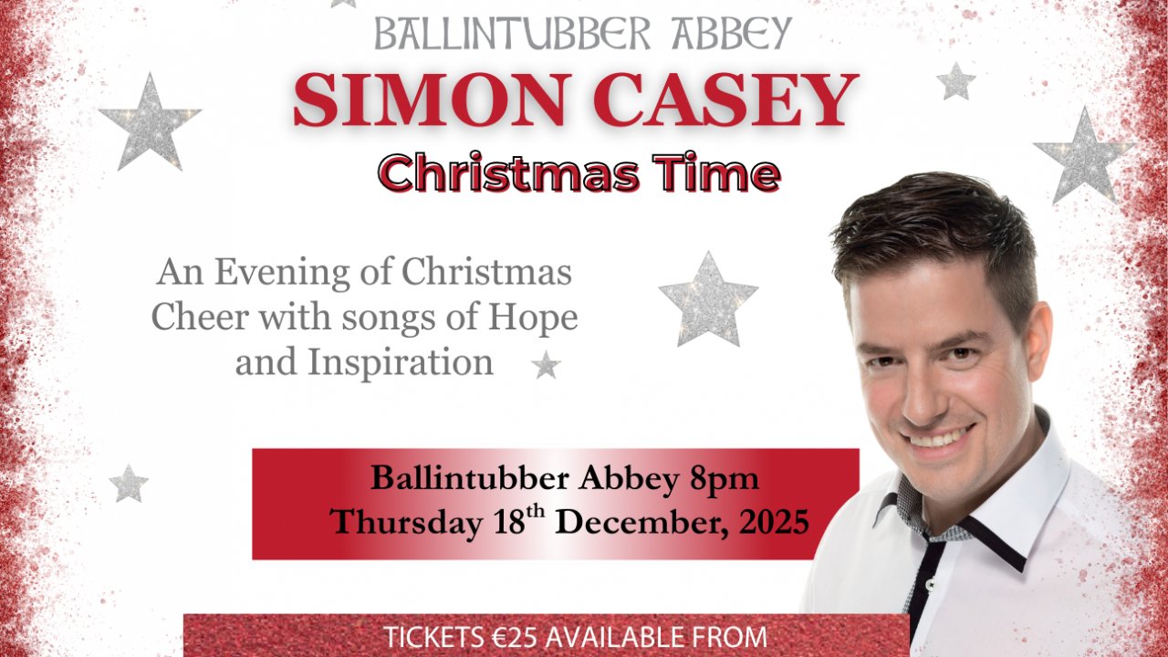 We are thrilled to welcome Simon Casey for the first time at Ballintubber Abbey’s Christmas Concert! Join us on Thursday, 18th December, for an evening filled with festive cheer and inspirational music.